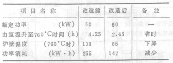 在350kg井室熔煉電阻爐中,改造前和改造后熔煉第二爐所用時間縮短了1小時。據統計已改造的6臺井室爐及2臺箱式爐的升溫時間減少20%~40%,熱效率提高15%以上。