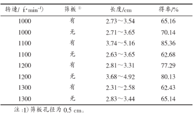 首先采用實驗室自行改裝的粉碎機對硅酸鋁纖維進行切斷。打漿條件及打漿后纖維長度和得率見表2。